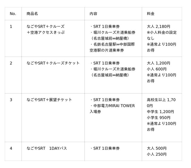 SRTの運行開始に合わせ、CentXwebチケットとして以下の商品を販売します。