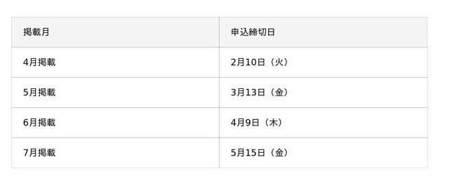 新入生向け広報が効果的な4月から、夏インターン広報に適した7月までの申込締切日は以下の通りです。
