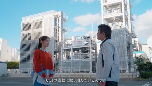 今回の『カワサキ水素大学』7限目「水素社会へ近づく技術」篇では、トラウデンさんが川崎重工の神戸工場を訪れ、CO2を回収する2つの設備を見ながら、それらが水素社会への「カギ」であることを学びます。川崎重工のCO2回収技術は、国内外の発電所で実証試験が行われています。また、回収したCO2は水素と合わせて都市ガスや航空機用の合成燃料として利用することも考えられています。「水素社会へ近づく技術」である川崎重工のCO2回収設備を本作でぜひご覧ください。
