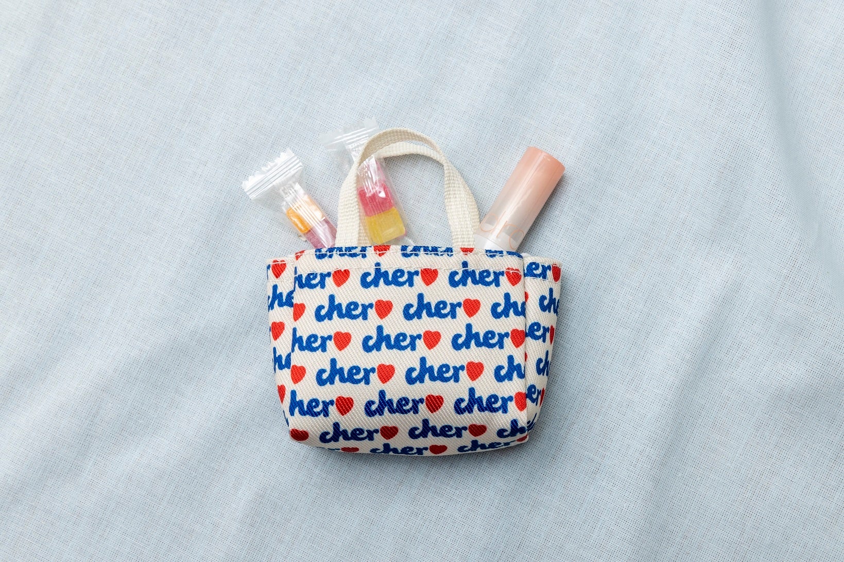 2000年代に裏原宿発で大流行し、2017年に閉店となった伝説のブランド「Cher(シェル)」。宝島社のファッション誌『sweet』の付録として登場したバッグやポーチは大ヒットし、当時多くのメディアでも取り上げられました。そのデザインを再現し、手持ちのバッグなどに付けられるミニキーホルダーとして復活しました。おしゃれチャームとしてはもちろん、リップや飴などの小物入れとしても楽しめます。