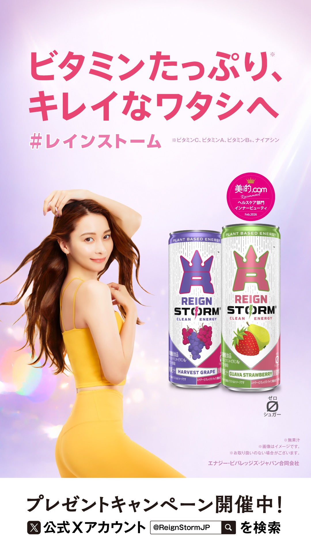 「レインストーム」は2023年にアメリカで誕生した植物由来のこだわり素材を使用した、美容にも健康にも嬉しいウェルネス系エナジードリンクです。ビタミンC・ビタミンA・ビタミンB6・ナイアシン・亜鉛などを取り入れた0カロリー・0シュガーの栄養機能食品。植物由来のカフェインを配合し設計、保存料は使用していません。■公式ウェブサイト:https://www.reignstorm.com/ja-jp/