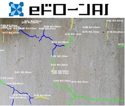 ドローンなどで撮影した構造物画像をAIが自動解析し、ひび割れやサビ等の劣化箇所を検出。