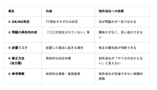 → 診断結果レポートをそのまま渡すだけで、具体的な修正依頼が可能