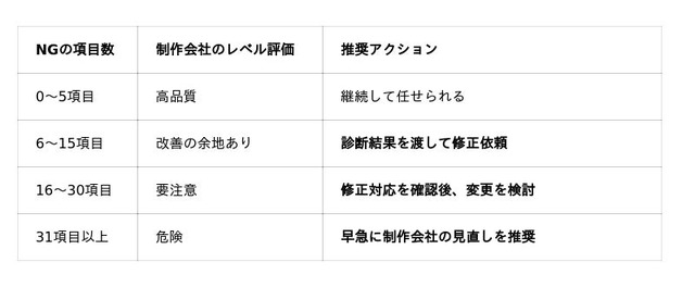 → 現在の制作会社のレベルを数値化し、変更判断の根拠を提供