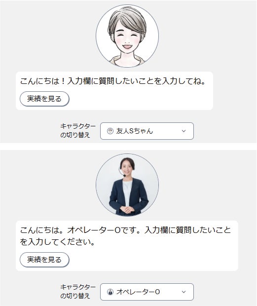 回答キャラクター(アバター画像、性格、話し方)を複数設定でき、ユーザーは任意のキャラクターを選んで質問できます。口調や雰囲気を自在に設定できるため、人による接客とシームレスにつながる、一貫したブランドイメージを活かした差別化が可能です。回答キャラクターを選べるエンタメ性も備え、親しみやすいユーザー体験を提供します。