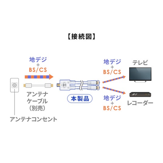 分配器本体と出力側ケーブルを一体化した設計により、接続ポイントを減らし信号損失を軽減。分離型にありがちな画質低下やノイズの心配を抑え、安定した受信環境を構築できます。