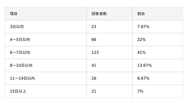 - 楽天カードの発行スピードは、41%が「6~7日以内」と回答。