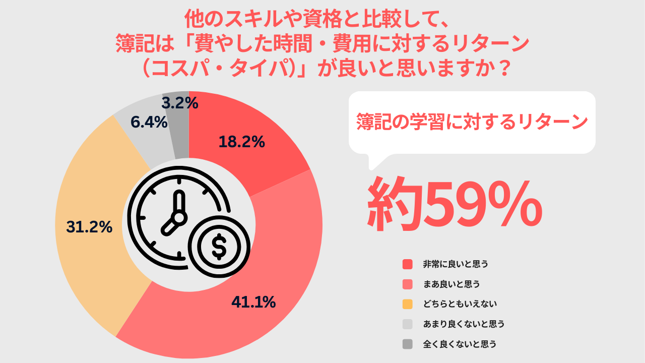 4. 【投資対効果】 59.3%が、他のスキルに比べ簿記は「コスパ・タイパが良い」と評価。