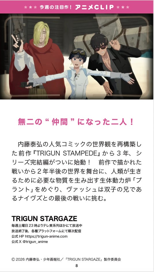 株式会社徳間書店(本社:東京都品川区、代表取締役社長:小宮英行)は、2028年に創刊50周年となるアニメ情報誌『Animage(アニメージュ)』の新たなラインナップとして、電子書籍専売の週刊エンタメマガジン『週刊アニメージュ』を2026年2月6日(金)より創刊いたします。