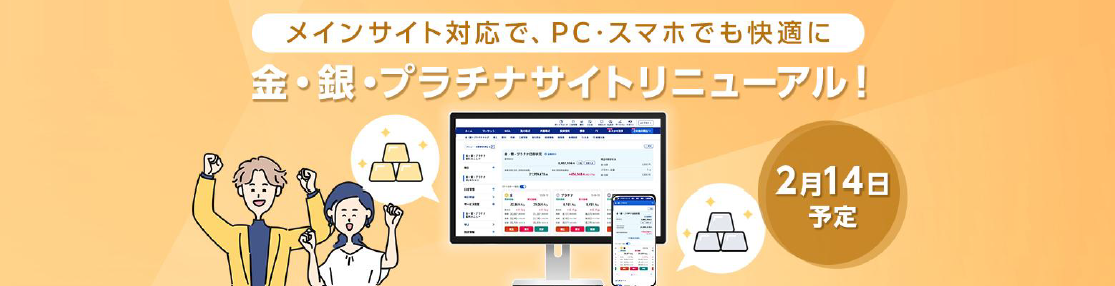 株式会社SBI証券(本社:東京都港区、代表取締役社長:高村正人、以下「当社」)は、2026年2月14日(土)夜間より、金・銀・プラチナ取引サイト全面リニューアルを実施しますので、お知らせします。