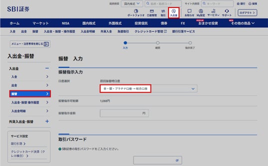 4. 資金振替機能をメインサイト内に集約