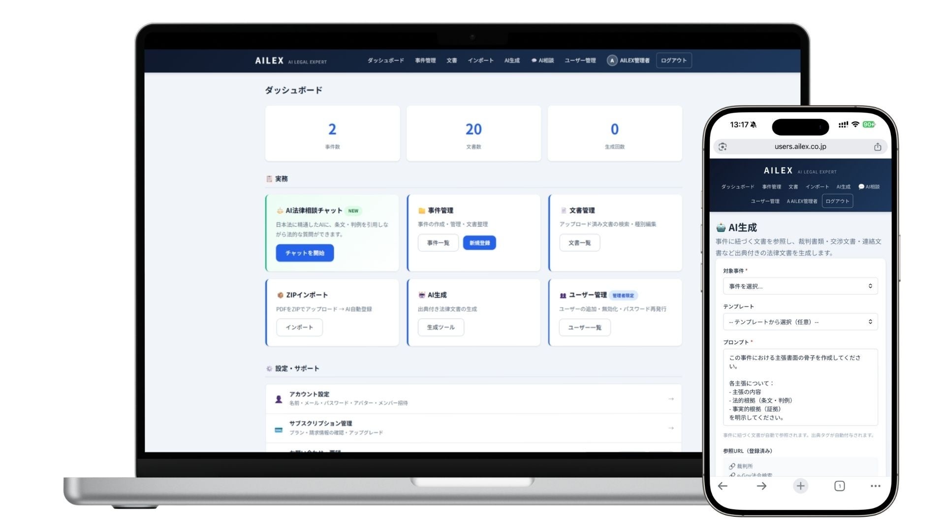 AILEX合同会社(本社:東京都港区 / COO:山川 慎太郎)は、法律事務所向けAI統合訴訟支援クラウドSaaS「AILEX」(エイレックス)のベータ版を、本日2026年2月8日に正式リリースいたしました。