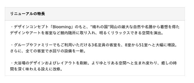 ■「三井ガーデンホテル岡山」リニューアルの特長