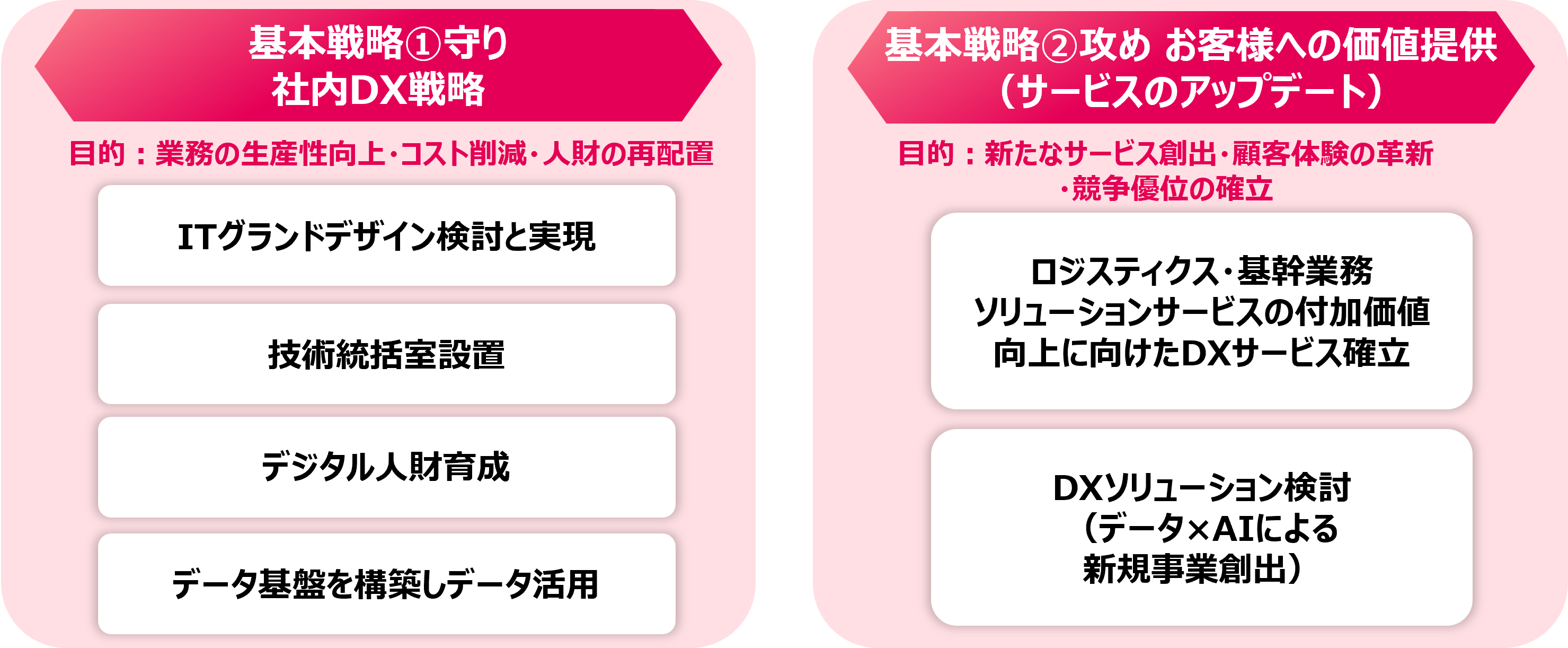 ITを生業とする当社において、常に世の中におけるデジタル技術に関する動向情報にアンテナを張り巡らせ、良いものは感度良くスピード感をもって取り入れ、持続的に我々自身が進化・進展を遂げていく必要があります。そのため、このたび今後の取り組みについて、「DX戦略」として体系的に策定いたしました。「お客様のために」の気持ちを忘れることなく、持続的にデジタル技術を最大限に駆使した付加価値の高いサービスを提供する仕組みを構築して、「当社にしかできないコト」を実現します。お客様のお困りごとについて改革・解決に導き、1社でも多くの「お客様」と善き長きお付き合いができる会社を目指して参ります。