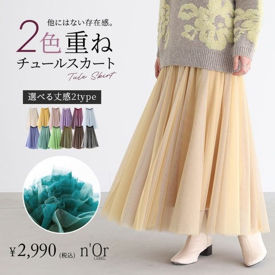 n'OrLABEL配色ボリュームチュールスカート ¥2,990