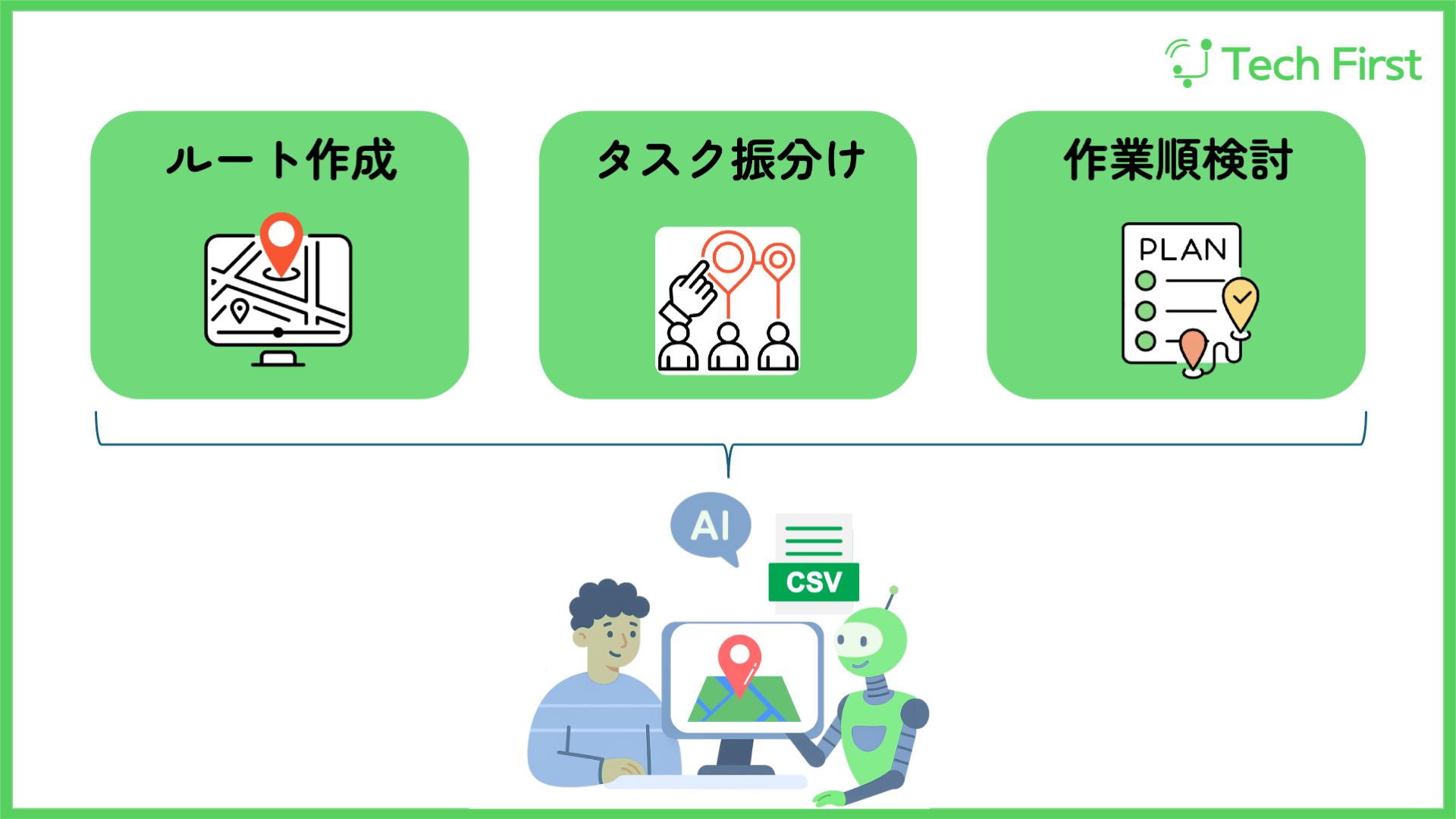 ルート作成・タスク振り分け・作用順検討などの手作業で行っていた業務が全てAIで対応可能