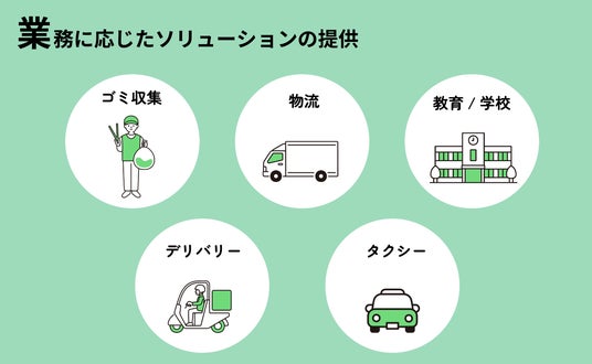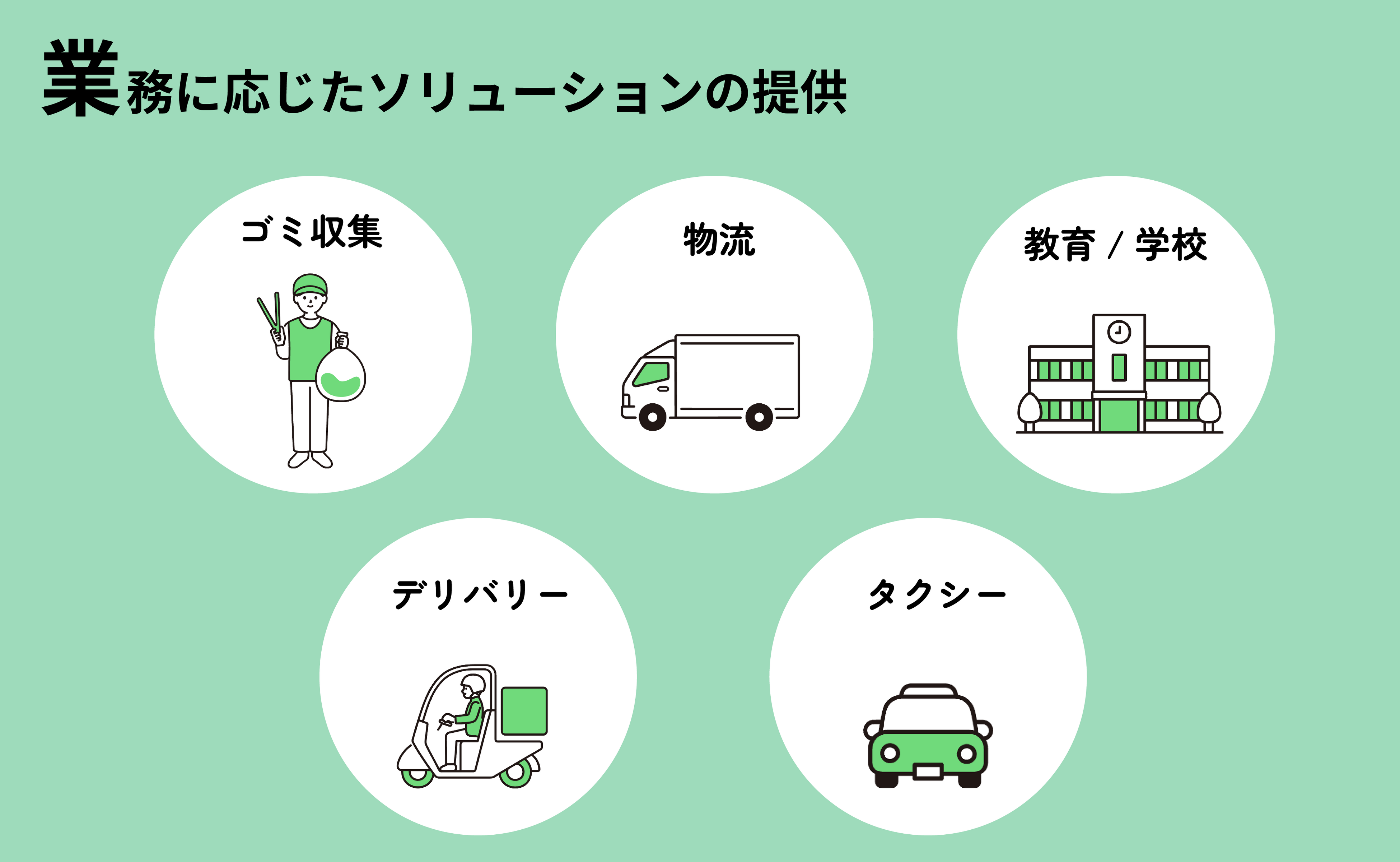 業務に応じたソリューションの提供/ごみ収集・物流・教育・学校・デリバリー・タクシーなど