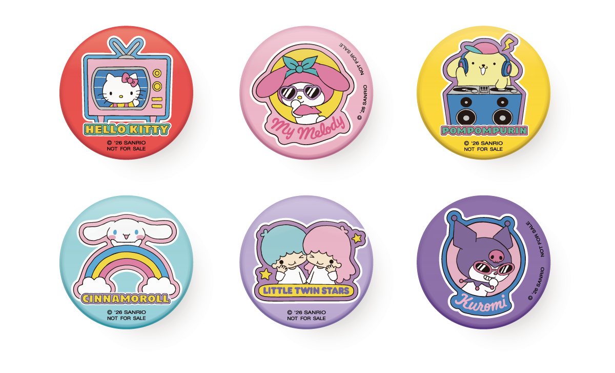 会場内で10分に1回「Omoide Badge」の本イベント限定パックを引くことができ、バッジを獲得できます。フルコンプリート(6個)すると、サンリオブースにて先着でノベルティとして数量限定の缶バッジ(全6種)をランダムで1個プレゼント。本アプリのバッジには、それぞれ思い出を記入し、当日のイベントの感動を証跡として残しておくことができます。