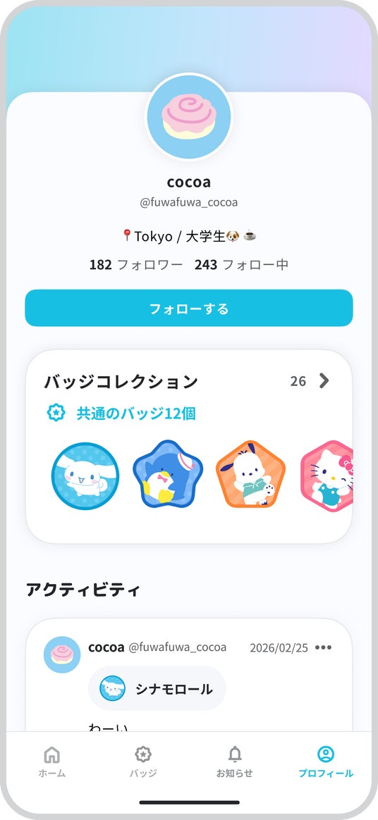 株式会社サンリオ(本社:東京都品川区、社長:辻 朋邦、以下サンリオ)は、来場・購買体験などを通してサンリオキャラクターとの思い出をデジタルアイテムとして残せる、スマートフォン向けアプリケーション「Omoide Badge(オモイデバッジ、以下、本アプリ)」の提供を2026年2月10日(火)より開始します。サンリオは現在、グループ共通の会員サービス「Sanrio+」を通じてIDを取得しており、10年後にはグローバルIPプラットフォーマーとして、 グローバルで1億ユーザー以上を目指しています。本アプリはその一環としてローンチされる新サービスで、ID連携しながらイベント参加・店舗来場・購買体験などをデジタルの“バッジ”として獲得・共有することで、「思い出の証跡」を残すことができます。