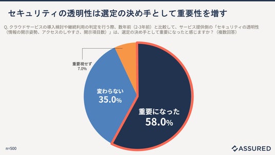 ・58.0%が数年前と比較してセキュリティ体制の透明性の重要度が高まったと回答