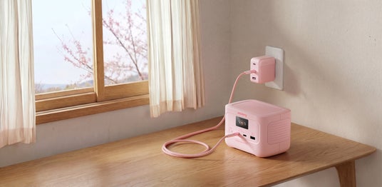最大102Wに対応する充電アダプターにも、新色「チェリーブロッサム」が登場します。USB-Cを2口、USB-Aを1口搭載しているため、スマートフォンやパソコ ン、タブレットなど、複数の電子機器を同時に充電することができます。 高効率・高耐久性を誇るGaN(窒化ガリウム)技術を採用し、高出力ながら極限のコンパクト・軽量化を実現しました。