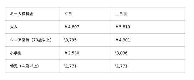 ※4月1日(水)~5月1日(金)の期間中、大人料金は¥5,566となります。