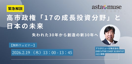 - タイトル: 高市政権「17の成長投資分野」と日本の未来 ― 失われた30年から創造の新30年へ- 日時: 2026年2月19日(木) 13:00 - 13:45