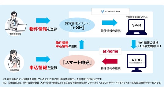 アットホームの「スマート申込」は、株式会社ビジュアルリサーチ(本社:東京都港区 代表取締役社長:小野 貴広 以下、ビジュアルリサーチ)が提供する賃貸管理システム「i-SP」と申込情報の連携をしています。このたびの導入によって、名鉄コミュニティライフは入居者の募集・申込業務から管理業務までスムーズに行うことができ、スピーディーなお客さま対応を可能にします。