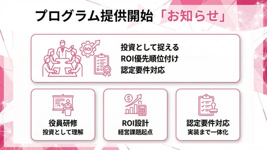 プログラム概要(役員研修+ROI設計+認定要件対応を一体化)
