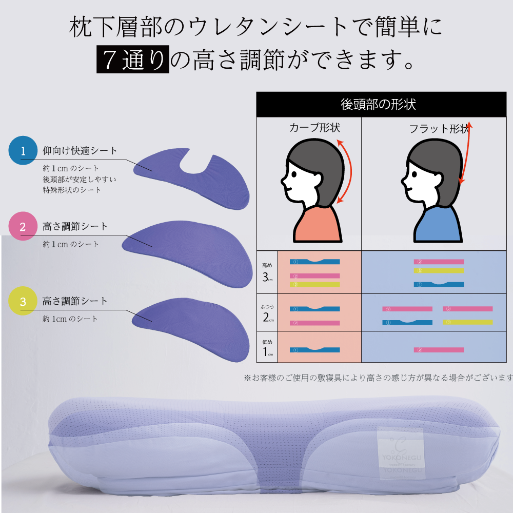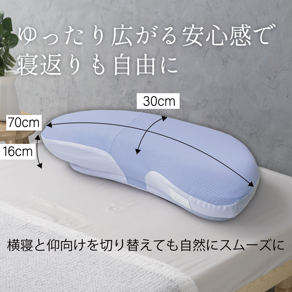 ■独自のブーメラン形状で心地良いフィット感とYOKONEGUシリーズに採用の特許取得済み”⼆階建構造”で横向き寝時の腕や肩への負担を軽減。