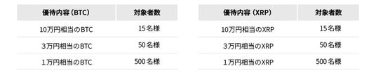 抽選で総額1,600万円相当のBTCおよびXRPを進呈