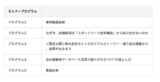 本セミナーでは、29都道府県下に262店舗を展開するホームセンターチェーン、株式会社カインズが取り組む「自社経験者データベース活用」の実例を成果はもちろん、導入の裏側や注意点まで、ここでしか聞けないリアルなストーリーをお届けします。