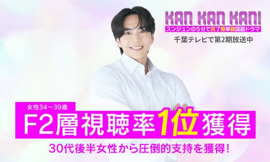 株式会社アクセントエース(東京都中央区)は、代表のスンジュンがレギュラー出演する韓国語学習番組『KAN・KAN・KAN!』第2期において、2025年12月17日放送回がF2層(女性34~49歳)視聴率1位を獲得したことをお知らせします(弊社調べ)。