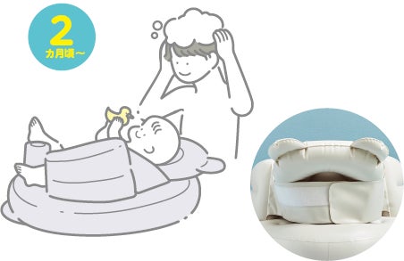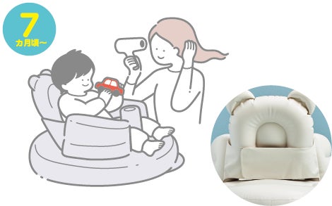 ふかふかリクライニングベビーチェアは、月齢に合わせて背もたれの角度調節ができるベビーチェアです。背もたれ背面のベルト調節により、腰すわり前には背もたれを倒して寝かせ、腰すわり後は背もたれを起こして座らせておくことができ、成長に合わせて長くご使用いただけます。