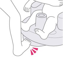 ストッパーを足で押さえることで、チェアが一緒についてくることがなく、ラクに抱き上げできます。