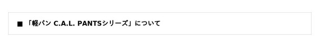 「軽パン C.A.L. PANTSシリーズ」は、「コンパクト」「アクティブ」「軽さ」をベースにシーンにあった機能を搭載した機能性の高いパンツです。デニム風パンツ、トラックパンツ、カーゴパンツ、コミューターなど素材やシルエットの異なる、あらゆるシーンで対応するラインナップをご用意いたしました。