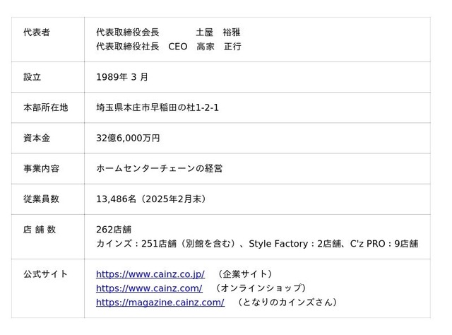 株式会社カインズは、29都道府県下に262店舗を展開するホームセンターチェーンです。
