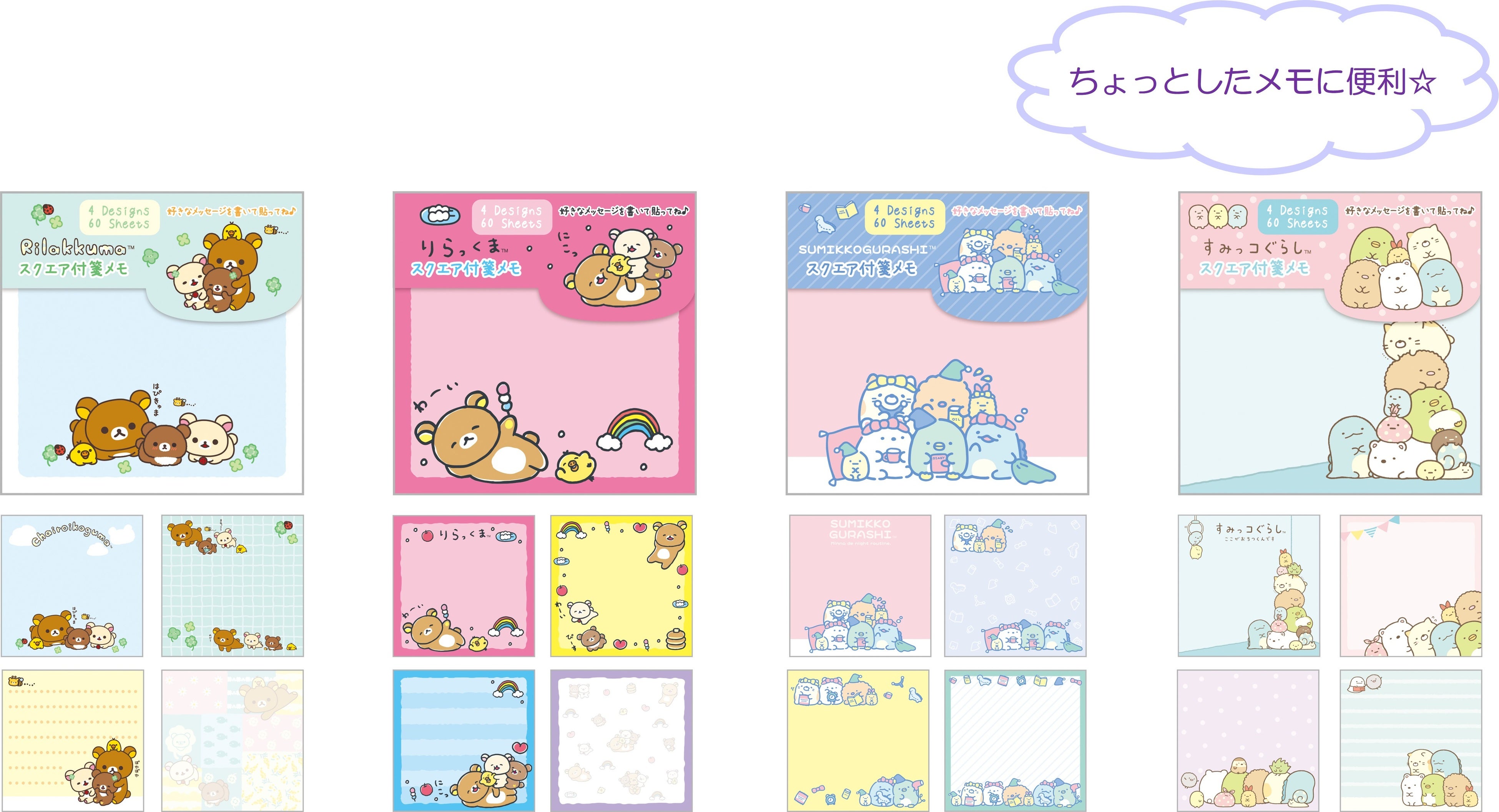 ・スクエア付箋メモ(各550円※税込):4柄60枚入り