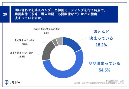 さらに、初回ミーティング時点で購買条件が「ほとんど決まっている/やや決まっている」と回答した人は72.7%にのぼっています。