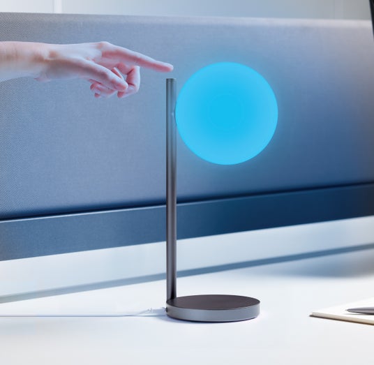 Steli9色のLEDカラーを備え、タッチ操作で直感的に使えるテーブルランプ。Bluetooth接続により複数台を同期させ、空間全体を統一した光で演出可能。