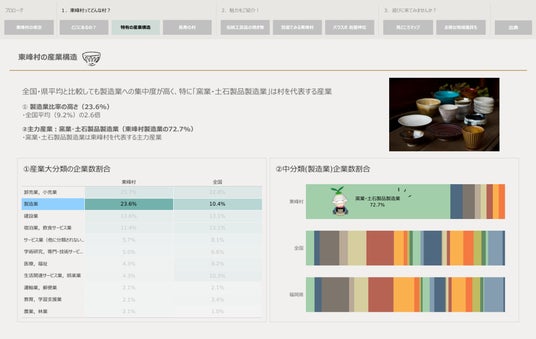 本事業では東峰村と連携し、地域データ※4を統合的に活用・分析し、「村の日常に潜む潜在的な魅力」を新たな視点で描き出しました。審査では、地域と協働して作り上げたデータストーリーの信頼性・実装力が高く評価され、「自然と文化の融合を極めたストーリーテリング賞」を受賞しました。