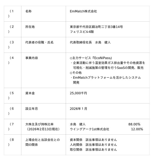 当社はEmMatch社が実施する第三者割当増資を引き受ける方法により、以下のとおりEmMatch社の株式を取得(以下「本株式取得」という)致します。