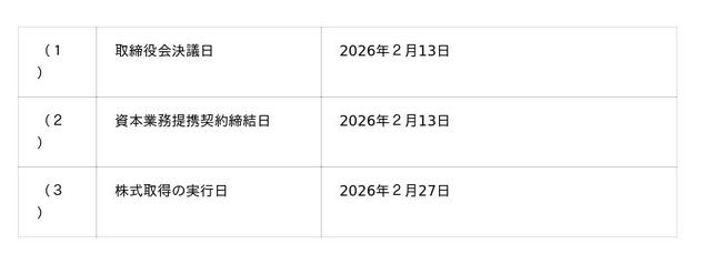3. 本株式取得の実行日: 2026年2月27日