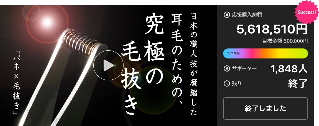 刃物の町、岐阜県関市のカミソリメーカーとして、その職人技を凝縮した究極の耳毛抜きを「Makuake」でデビューさせ、現在、「Makuake STORE for ECモール」で継続発売中。ストア内でも常に売り上げ上位にランクインしています。