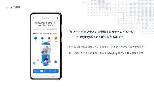 ユーザーが報酬(PayPayポイント)を期待してガチャを引くタイミングで短尺広告を挿入するため、高い視聴完了率を維持しながら1ユーザーあたりの収益性(ARPU)を最大化します。