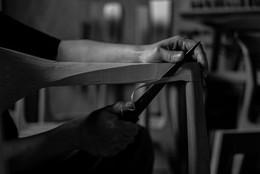 木が持つ優しくなめらかな触れ心地を引き出すように、宝物みたいに大切にしている刃物たちを使って、一削り一削りじっくり時間をかけて仕上げています。 道具を握る指先も、そしてその道具が出す音や木屑のひとかけらまで美しく。 そんなふうにして、使う人と永く寄り添える家具を一つひとつ丁寧につくっています。