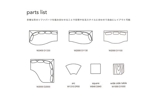 また、多様な形のソファパーツを組み合わせることで、空間や生活のスタイルに合わせて自由に並び替えることもできる。