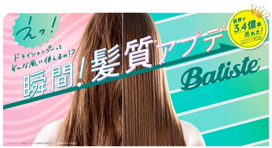 「バティスト」は1970年にイギリスで誕生して以来、独自の優れた技術により、髪を理想の状態に導いてきたドライシャンプーブランド。世界累計出荷本数は3億4,000万本※1、世界90か国以上※2で愛されています。近年、美容大国・韓国のヘルス&ビューティストアチェーン「オリーブヤング」において1,300店舗で販売(2025年3月現在)。オンラインチャネルやコンビニエンスストアでも販売されており、韓国でも大人気のヘアケアアイテムです。日本では、2025年5月、まとまりを求めるアジア人の髪質に合わせて開発されたラインアップを世界最速で発売。朝のスタイリング前やお出かけ先、寝る前など1日中使用でき、髪を瞬間※3でまるで髪質※4が変わったかのようにアップデート。 “リフレッシュ”だけではない、今までにないドライシャンプーの新価値を提案してまいります。