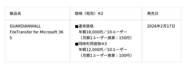 ※3. 同時利用価格は、「GUARDIANWALL」シリーズ製品と同時利用の場合の価格です。