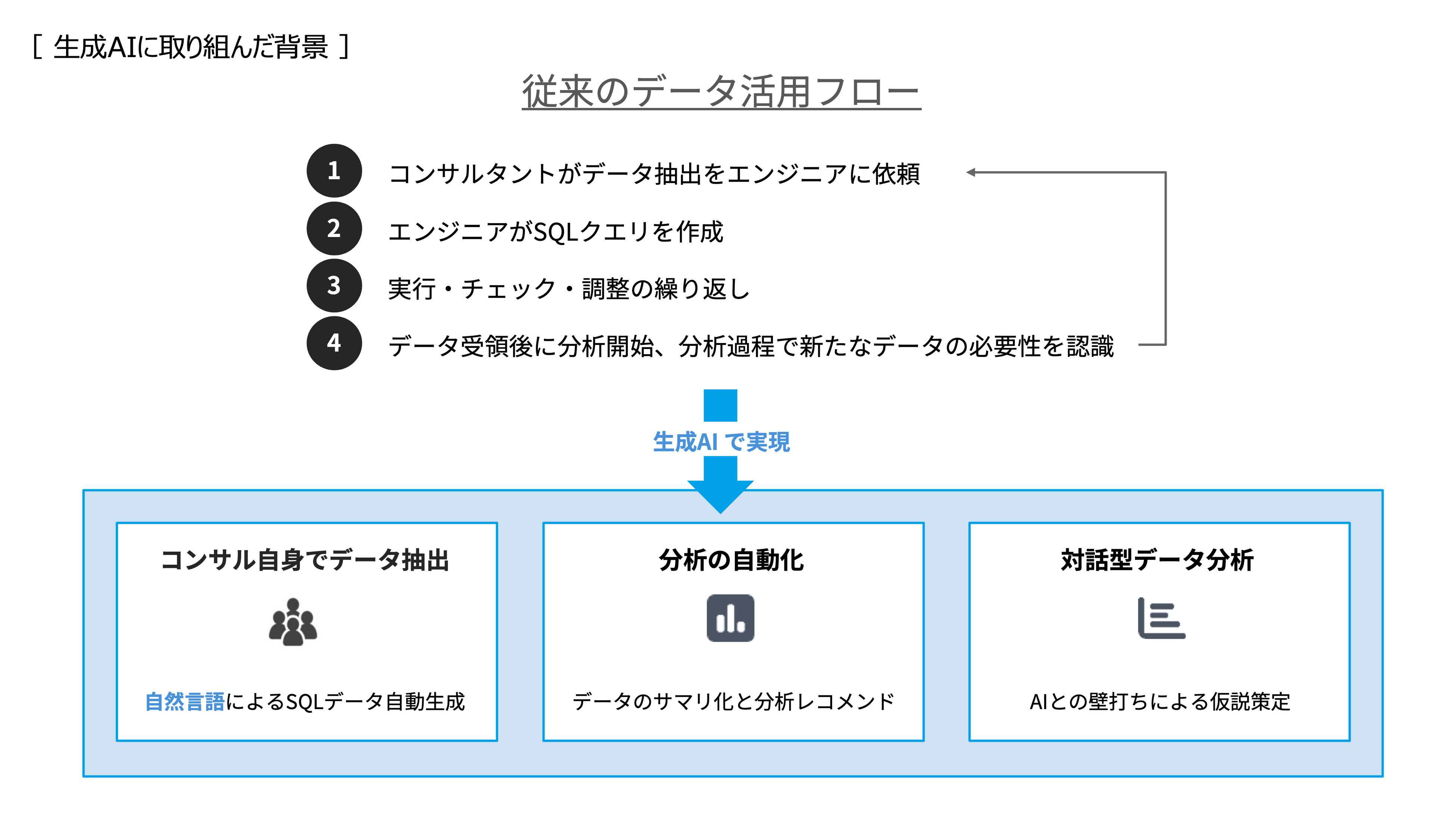 - 分析依頼→抽出→確認→再依頼という往復が発生